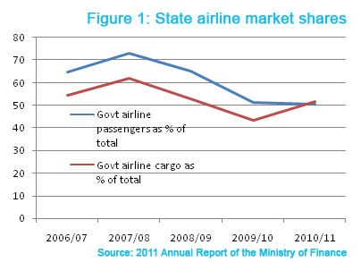 People were not deprived of international travel prior to 2007 when Emirates managed the government airline. So it cannot be argued that government ownership is essential. In fact, the government airline is carrying a decreasing share of passengers and cargo. If anything, the government airline is less significant now than before 2008.