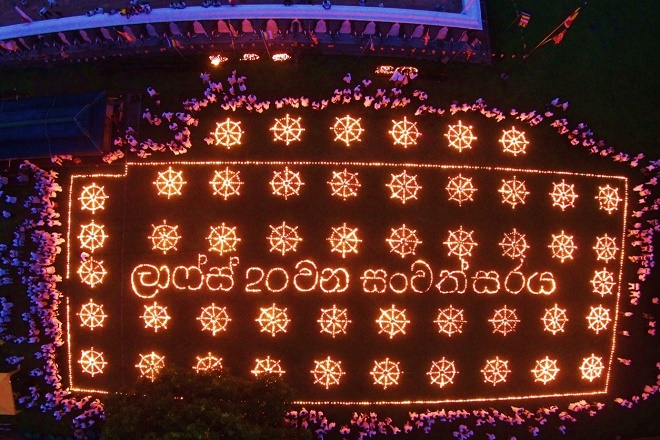 The day’s events concluded in the evening with a breathtaking offering of a ‘Pahan Pujawa’ in commemoration of LAUGFS’s 20 year journey. It was a stunning moment as the LAUGFS team lit 20,000 clay oil lamps laid out in the garden whilst spending time in meditation and hopes for future success and blessings.