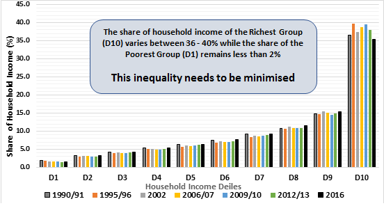 Figure 1 – Share of Total Household Income by Household Income Deciles – 1990/91 to 2016