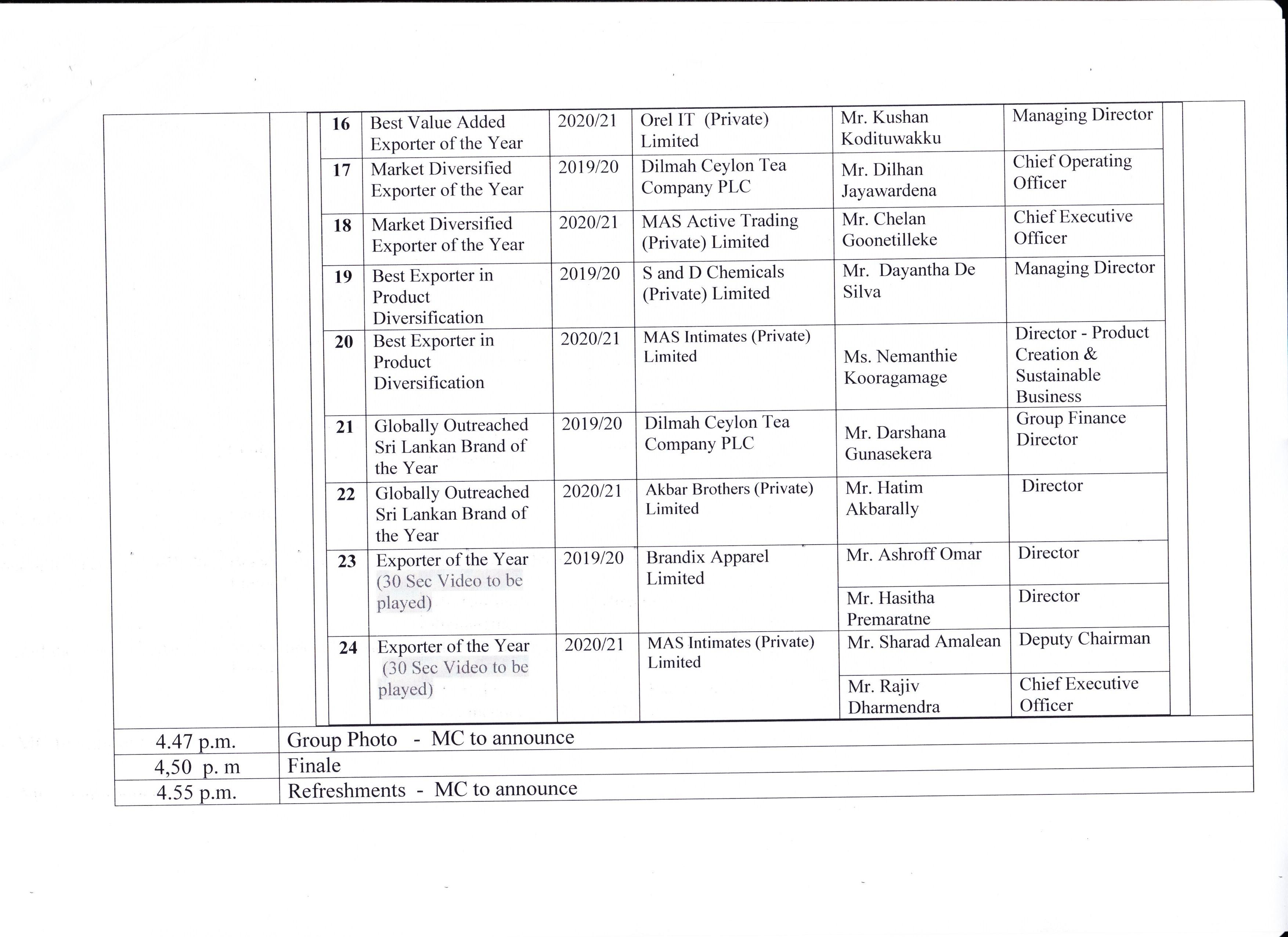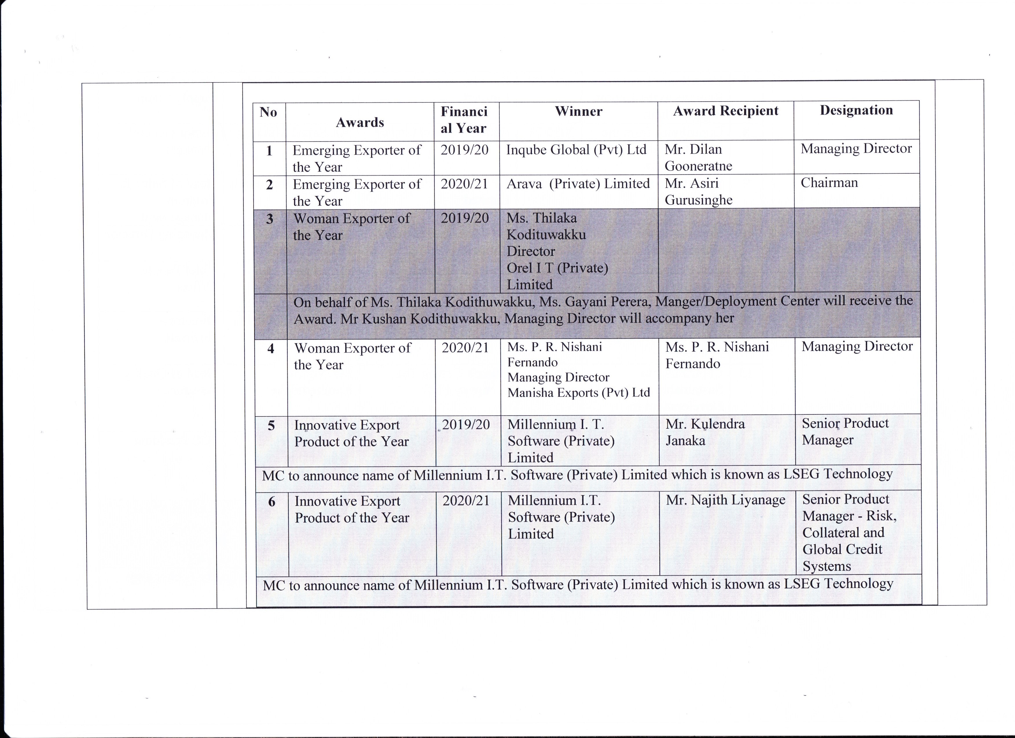 This is the highest and most exclusive award an exporter can receive in Sri Lanka and the Presidential Awards are given to exporters who have made the highest contribution to the development of the export sector.