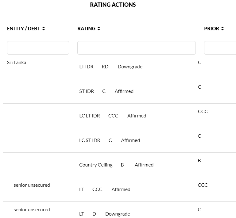Fitch Ratings has downgraded Sri Lanka’s Long-Term Foreign-Currency (LTFC) Issuer Default Rating (IDR) to ‘RD’ (restricted default) from ‘C’.