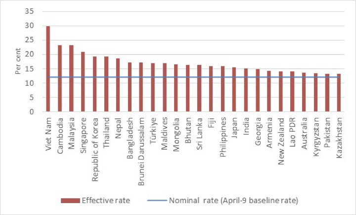 Figure 1. Effective tariff burden faced by Asia-Pacific economies