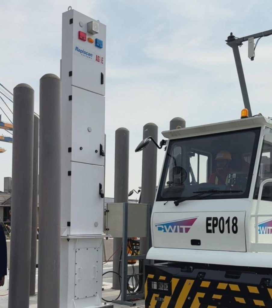 A vehicle approaching the newly commissioned radiation detection equipment at the Colombo West International Terminal (CWIT)