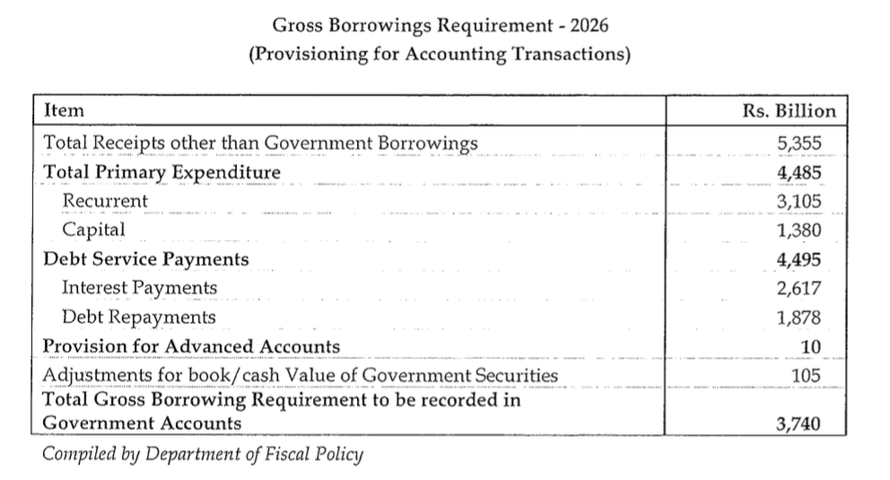 Parliament on 26.09.2025 should be revised by reducing it by Rs. 60 billion to Rs. 3,740 billion. This revision is presented in Annex Il of this Budget Speech.