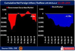 May 10, 2019 (LBO) – Foreign institutional selling of Sri Lanka’s government bonds picked up pace in the past week with approximately Rs11bn (US$60mn) of net outflows. Total foreign investor holdings of Sri Lankan government bonds has now reached multiyear lows, with total foreign holdings at just over US0mn.The fallout from the Easter Sunday terror […]