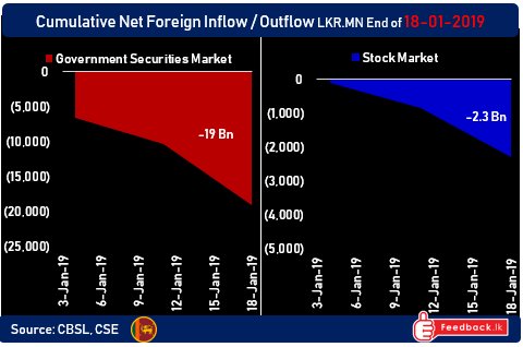 January 18, 2019 (LBO) – Foreign institutional investors have continued to sell Sri Lanka’s bonds and stocks, even after Sri Lanka’s constitutional crisis has been resolved. Figures up until the 18th of January 2019 show Rs19bn (US$100mn) in net foreign selling out of Sri Lanka’s government bond markets. Equity markets showed net outflows of Rs2. […]