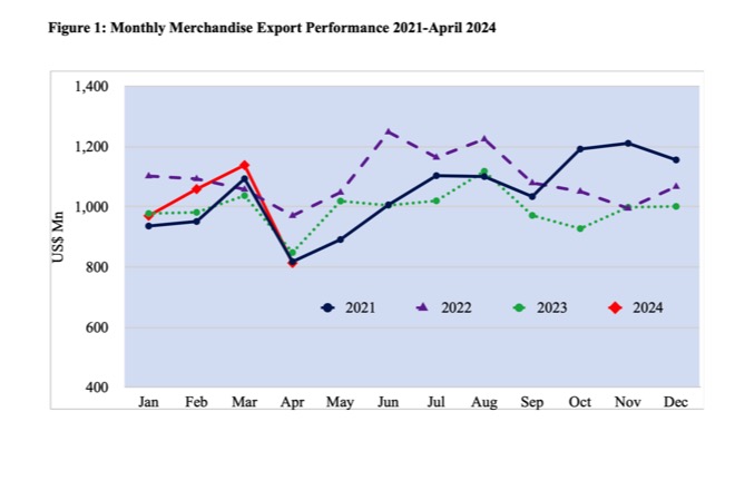 The total exports (Merchandise & Service) for the month of April 2024 was recorded as US$ 1,114.22 Million increasing 1.25 % over the corresponding period of 2023. As per the provisional data released by the Sri Lanka Customs, the merchandise export performance in April 2024 amounted to US$ 813.81 million, recorded decrease of 4.1 % […]