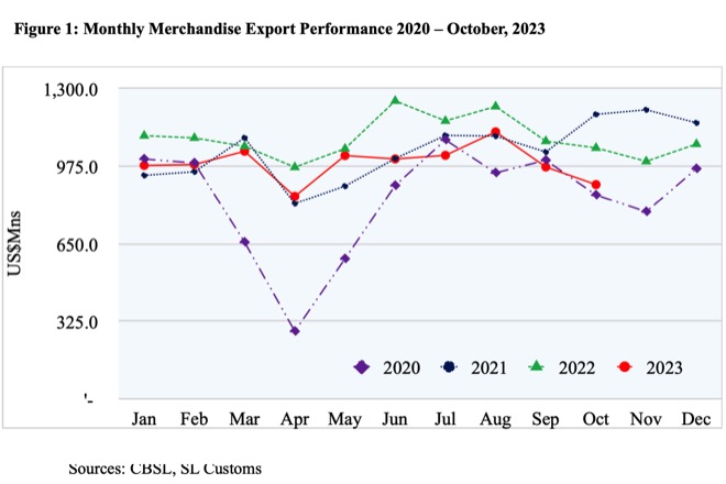 Sri Lanka’s exports decreased by 14.6-pct in October 2023