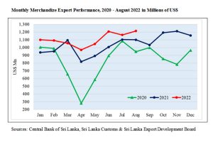 Earnings from the merchandise exports increased by 5.75 % y-o-y to US$ 1,093.98 Mn in September 2022 as per the data released by the Sri Lanka Customs. This was mainly due to the increase in export earnings from Apparel & Textiles, Tea, Gems & Jewellery, Electrical & Electronic Components and Spices & Essential Oils. Monthly […]