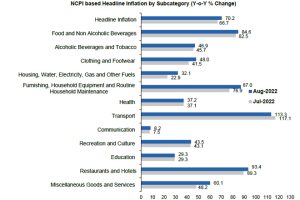 Headline inflation, as measured by the year-on-year (Y-o-Y) change in the Colombo Consumer Price Index increased to 64.3% in August 2022 from 60.8% in July 2022. This increase in Y-o-Y inflation was mainly driven by the monthly increases of both Food and Non-Food categories. Accordingly, Food inflation (Y-o-Y) increased to 93.7% in August 2022 from […]