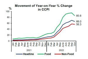 Headline inflation, as measured by the year-on-year change in the Colombo Consumer Price Index which followed an increasing trend since October 2021, declined to 66.0% in October 2022 from 69.8% in September 2022. Following a similar trend, the Food inflation decreased to 85.6% in October 2022 from 94.9% in September 2022, while the Non-Food inflation […]