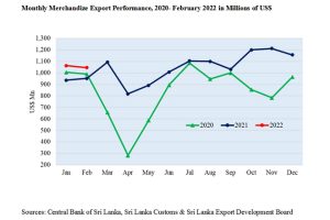 Sri Lanka’s merchandise exports increased by 9.91% to US$ 1,046 Million in February 2022 compared to February 2021 as per the data released by the Sri Lanka Customs. Further, it is a 5.8% increase when compared to February 2020. Sri Lanka’s Merchandize Exports has maintained the above $ 1 billion mark continuously since the beginning […]