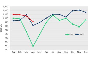 Earnings from the merchandise exports increased by 9.9 % y-o-y to US$ 980.2 Mn in May 2022 as per the data released by the Sri Lanka Customs. This was mainly due to the increase in earnings from export of Apparel & Textiles, Coconut based products and Electrical & Electronic Components. Table 1: Merchandise Export Performance […]