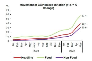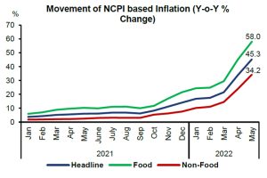Headline inflation, as measured by the year-on-year (Y-o-Y) change in the National Consumer Price Index has increased to 45.3% in May 2022 from 33.8% in April 2022. This increase in Y-o-Y inflation was driven by the monthly increases of both Food and Non-Food categories. Accordingly, Food inflation (Y-o-Y) increased to 58.0% in May 2022 from […]