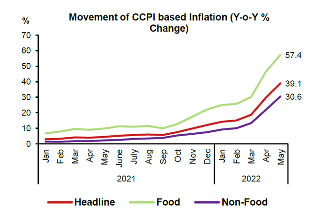 CCPI based headline inflation increased to 39-pct in May; food inflation at 57-pct: CBSL