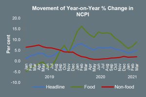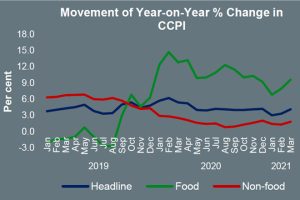 Headline inflation as measured by the year-on-year (Y-o-Y) change in the National Consumer Price Index has been increased to 5.1 percent in March 2021 from 4.2 percent in February 2021 due to the statistical effect of the low base prevailed in March 2020. Food inflation (Y-o-Y) increased to 8.8 percent in March 2021 from 6.9 […]