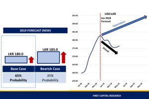 First Capital upgrades exchange rate outlook for 2019E to LKR 180 from 194