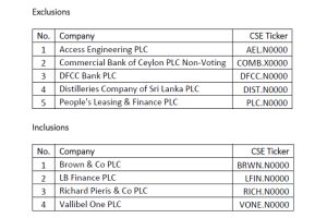 CSE announces changes in S&P SL20 at mid-year index rebalance