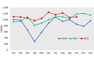 Earnings from the merchandise exports decreased by 8.18 % y-o-y to US$ 1,094.8 Mn in October 2022 as per the data released by Sri Lanka Customs. This was mainly due to the decrease in export earnings from Apparel & Textiles, Tea, Rubber based Products, Coconut based Products, Spices & Essential Oils, and the Fisheries sector. […]