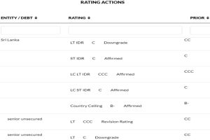 Fitch Ratings has downgraded Sri Lanka’s Long-Term Foreign-Currency Issuer Default Rating (IDR) to ‘C’ from ‘CC’. The issue ratings on foreign-currency bonds issued on international markets have also been downgraded to ‘C’ from ‘CC’. The Long-Term Local-Currency IDR has been affirmed at ‘CCC’ and the Country Ceiling at ‘B-‘. A full list of rating actions […]