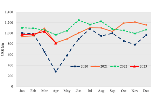 Merchandise exports decreased by 16-pct in April 2023 compared to April 2022